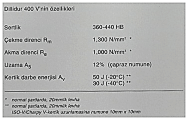 Günümüzün, modern DILLIDUR 400 V çeliklerinin aşınmaya dayanıklılıkları, geleneksel haddelendirme yöntemi yerine, geliştirilen özel ısıtma yöntemi ile artırılmıştır. Bu yöntemle sertliğini ve işlem/uygulama kolaylığını düşük ısılarda da muhafaza etmektedir. DILLIDUR 400 V, sertliğine karşı işlenme kolaylığını muhafaza etmesini özel kimyasal yapısına borçludur. Bu şekilde tasarım ve imalatlarınızda proje yükleri açısından kalınlıkları inceltebilir, aşınma ve dayanıklılığı gerek gördüğünüz yerlerde artırabilirsiniz. Bu kolaylıkların tümü DILLIDUR 400 V ile hizmetinize sunulmuştur.