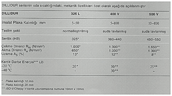 Kullanım alanı en yaygın olan DILLIDUR 400 V ' ye ek olarak, üretimin diğer iki çeliği DILLIDUR 325 L ve DILLIDUR 500 V'dir. DILLIDUR 500 V aşınmaya en yüksek mukavemet göstermek için geliştirilmiştir. Doğal olarak bu çeliklerde kaynak ve işlem DILLIDUR 4 00 V tipine göre biraz farklılık gösterir. 325 L'yi ise; sıcak şekil verilmesi gereken ya da yüksek sıcaklıklarda çalıştırılması gereken, aşınmaya dirençli imalatlarınız için alaşımsız DILLIDUR 275 U tavsiye ederiz. Bu serideki bir başka dur. aşınmaya dirençli ürün de alaşımsız DILLIDUR 275 U dur.