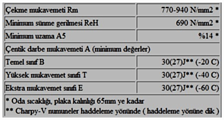 DILLIMAX 690'nın mukavemeti sadece alaşım ile elde edilmeyip aynı zamanda imalat sırasında su içinde söndürme ve bunu takip eden temperleme sayesinde elde edilir.
